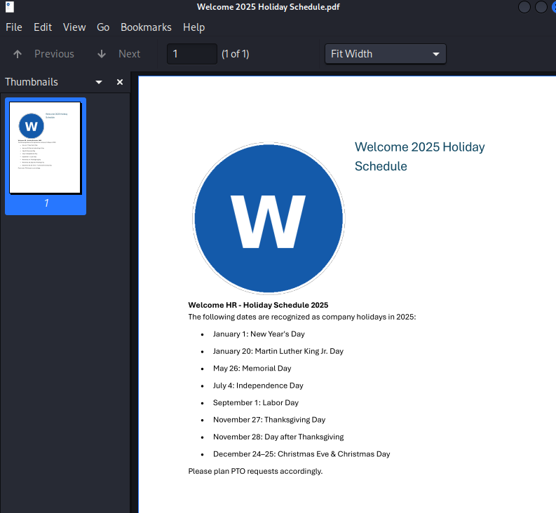 Upon unlocking the PDF, I discovered critical information: the default password for new employees is Welcome2025!@.