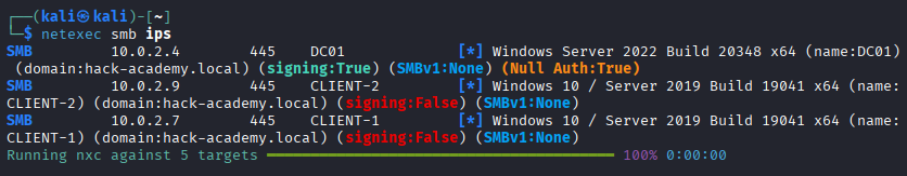 With the network configured, the next step is to verify that our Attack Box (Kali) can communicate with the target domain. I used a tool called NetExec on this part.