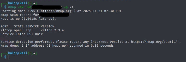 First exploit was the FTP and the vsftpd 2.3.4. I used the Metasploit tool for this.