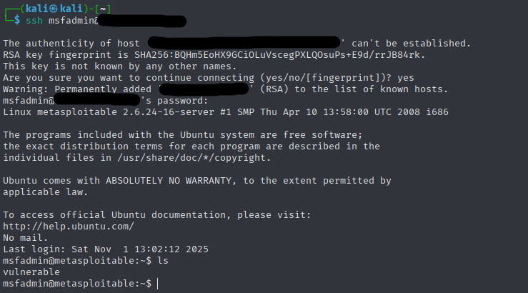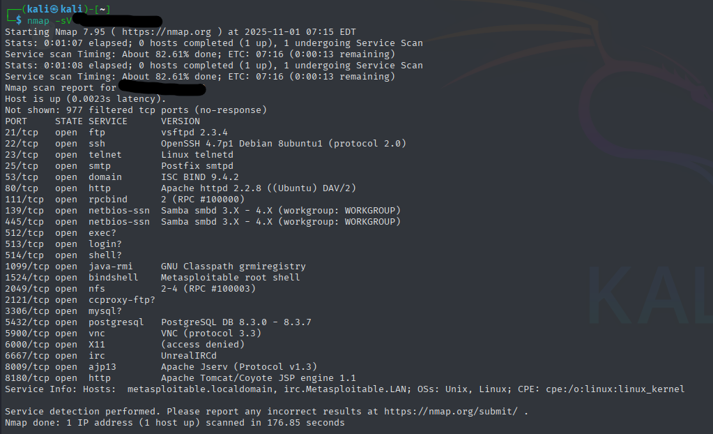 Metasploitable2 is vulnerable Linux virtual machine created by Rapid7 for learning and practicing ethical hacking or penetration testing skills. The system includes many intentionally outdated and misconfigured services such as web applications, ssh configurations and insecure databases.