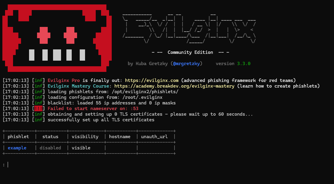 tmux attach -t evilginx) to interact with the console, and detach without killing the process.
